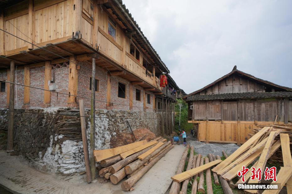 8月14日,贵州榕江计怀村村民改造自家老屋。贵州省黔东南苗族侗族自治州榕江县是一个以苗、侗、水、瑶为主体民族的国家级贫困县。2019年以来,榕江借助国家大力推动“危房改造”的东风,结合东西部扶贫协作等力量,打响“人畜分居”攻坚战,帮助当地少数民族民众改造人畜混居式木质结构房屋,结束了当地民众长期以来“人畜同居”的生活方式。目前,榕江县已摸底“人畜混居”家庭户8066户,已改造2000多户,预计2019年10月底前完成改造工作,以改善民众居住条件和环境,保障民众基本卫生健康。中新社记者 贺俊怡 摄