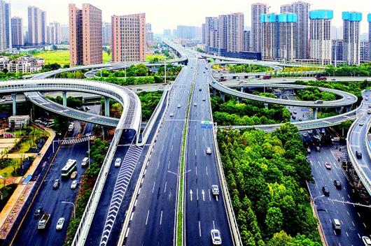 图为:汉口姑嫂树立交8条匝道全部建成,四通八达。