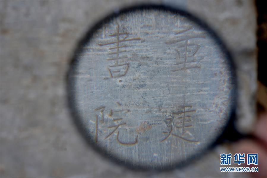 这是在新河县大贾村发现的“重修堂阳书院记”碑局部(10月30日摄)。 河北新河县文保部门日前在进行文物排查时发现一块清光绪年间石碑,记载了当时官办教学场所“堂阳书院”发展历史及重修过程,距今约137年。 新华社记者巩志宏摄