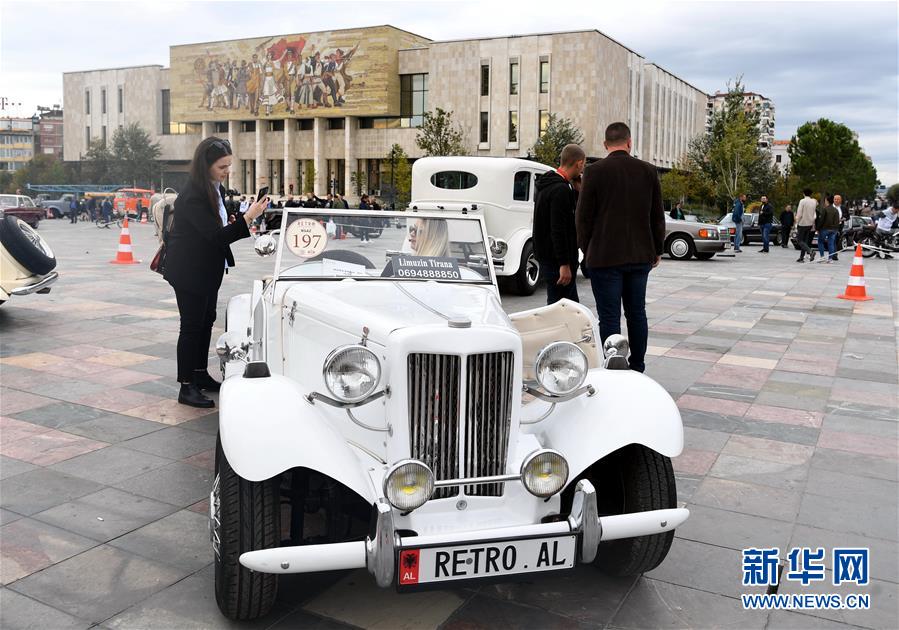 11月3日,在阿尔巴尼亚首都地拉那,人们在“怀旧”车展上参观。新华社记者 张立云 摄
