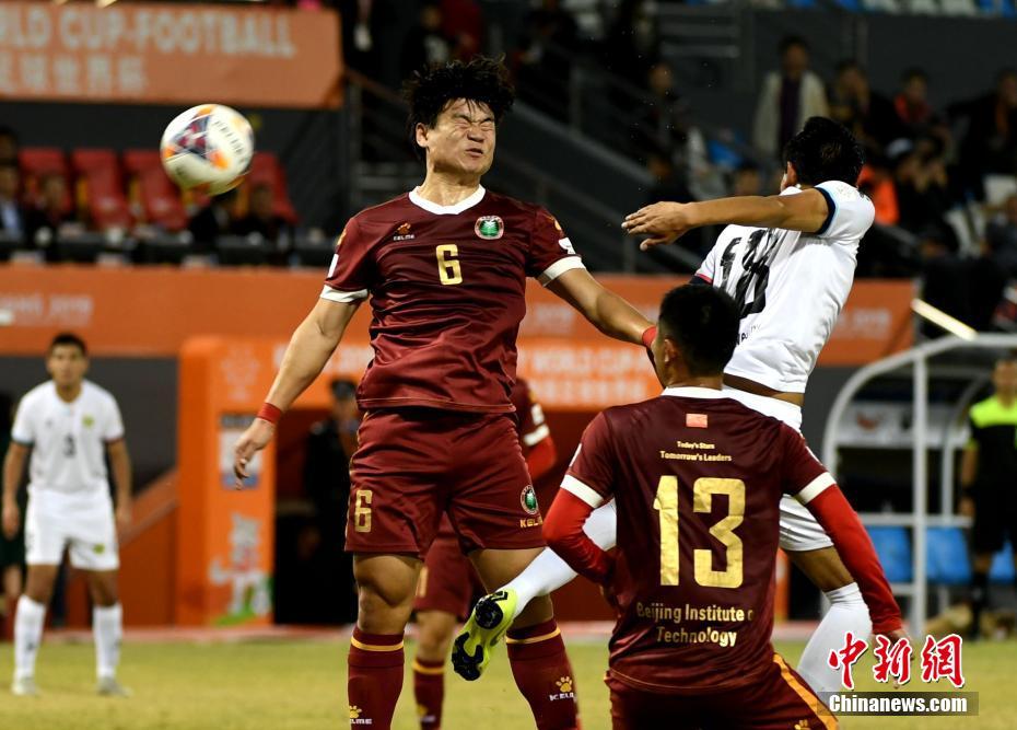 11月21日晚,2019年国际大体联足球世界杯在福建泉州晋江市开幕。揭幕战中,北京理工大学(红)0比1不敌墨西哥自治大学。国际大体联足球世界杯由国际大学生体育联合会2017年创办,是目前世界范围内大学生足球项目的顶级赛事和唯一赛事,每两年举办一届。中新社记者 王东明 摄