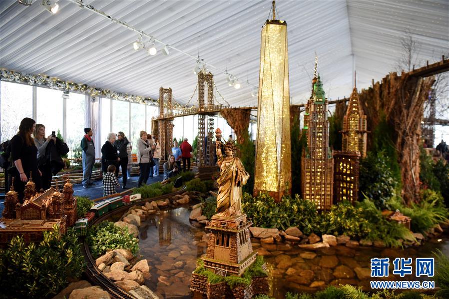 纽约植物园节日小火车展是纽约冬季传统活动之一,迄今已举办28届。今年的小火车展从2019年11月23日持续至2020年1月26日。各式火车模型穿行在用桦树皮、橡果、肉桂条等天然材料制成的175个纽约经典地标微缩模型中,为游客带来欢乐的节日气氛。