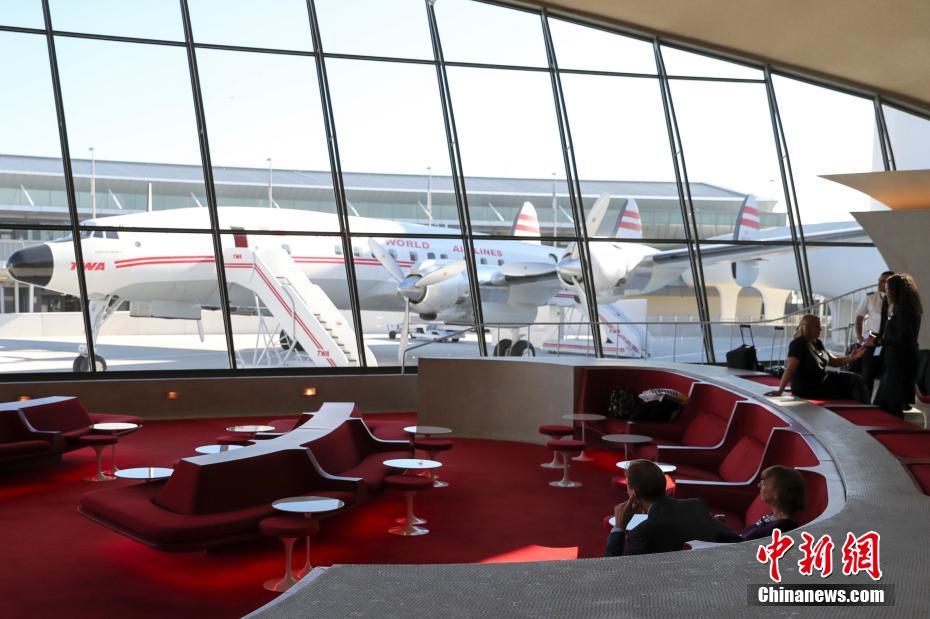当地时间11月30日,纽约肯尼迪机场营业中的TWA机场酒店,该酒店此前为TWA环球航空使用的航站楼。TWA航站楼建于1962年,2001年TWA宣布破产停止运营,2005年该建筑被宣布为美国国家历史性地标,2019年耗资2.65亿美元改建的怀旧主题TWA机场酒店正式运营。中新社记者 廖攀 摄