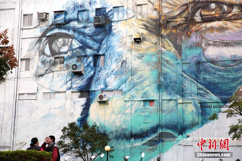 12月10日,台北西门町八层戏院墙壁上的巨幅壁画在历时近一个月的绘制后终于完成。该壁画由台北弘道老人福利基金会邀请壁画艺术家创作,旨在呼吁民众爱心助老,关注独居弱势老人。中新社记者 史元丰 摄