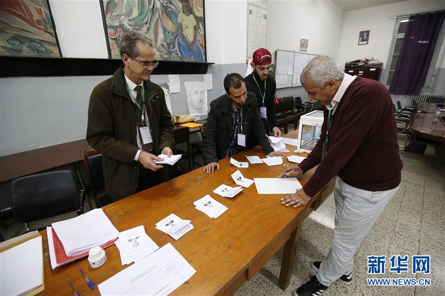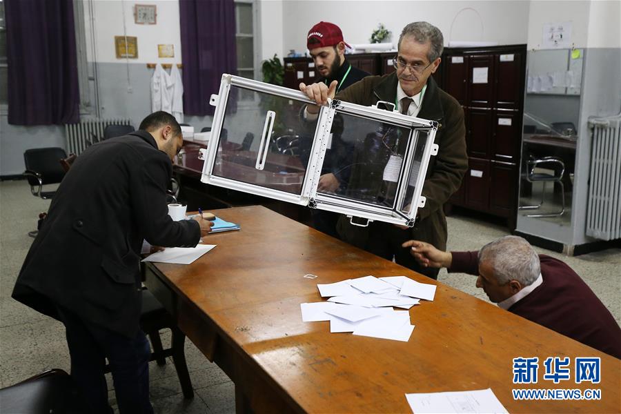 12月12日,在阿尔及利亚首都阿尔及尔一个投票站,工作人员统计总统选举选票。 新华社发