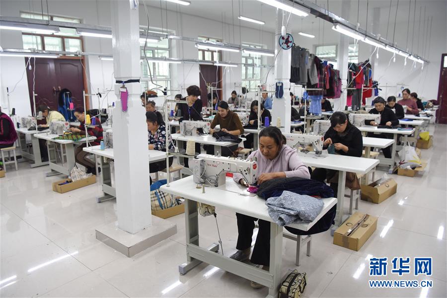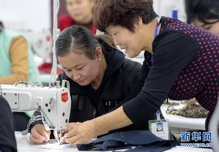在昭苏县洪纳海镇,参加缝纫工培训班的农牧民在进行实操练习(12月14日摄)。