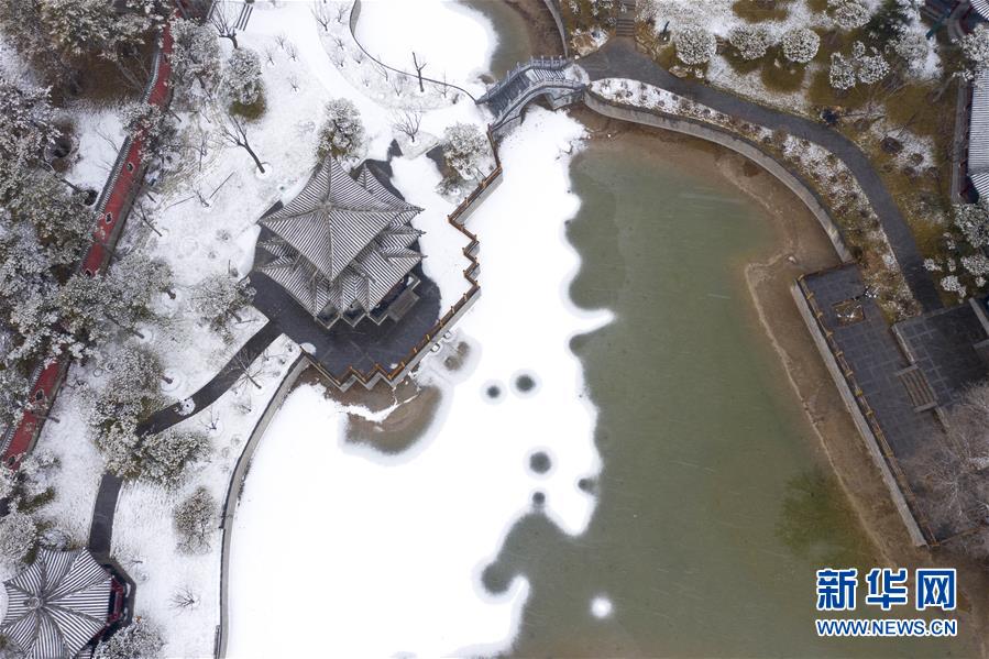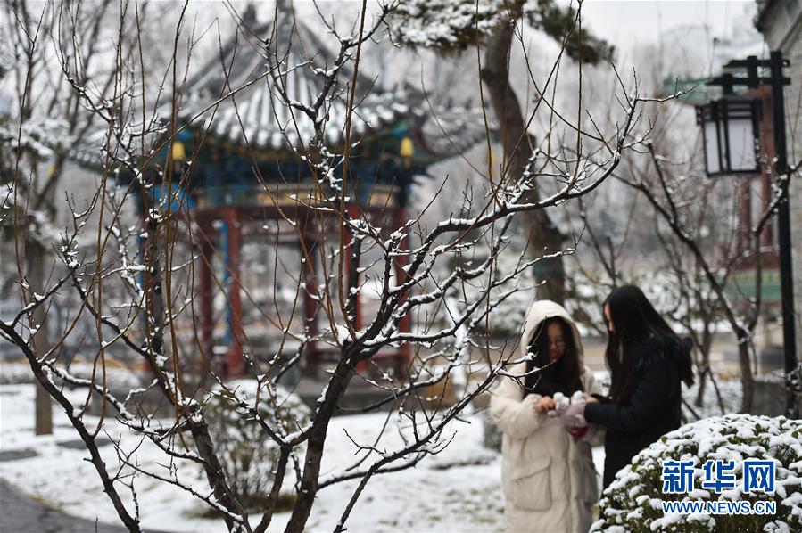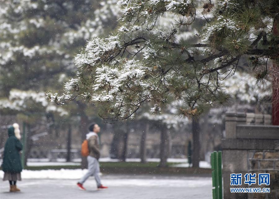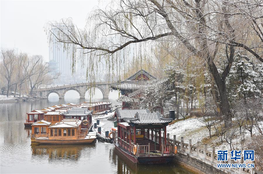 12月15日,行人在太原市迎泽公园欣赏雪景。新华社发(柴婷 摄)