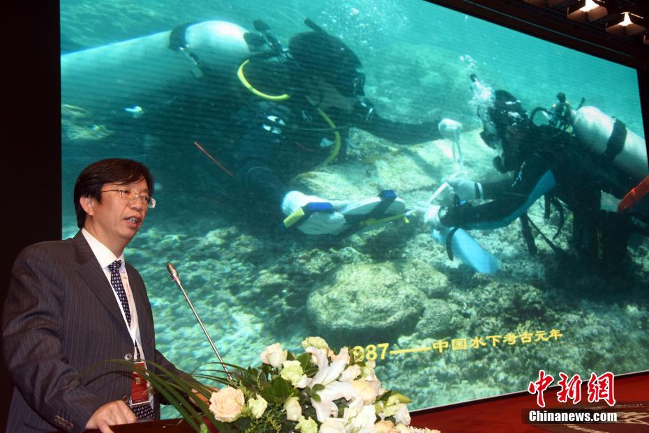 12月15日,主题为“城市化与全球化的考古学视野:人类共同的未来”的第四届世界考古论坛,在上海举办中国考古学新发现与研究专场,中国考古学界十多位专家学者代表登台演讲,分享各自主持考古项目发掘研究成果。图为中国国家文物局水下文化遗产保护中心水下考古研究所所长姜波介绍《从“南海Ⅰ号”沉船发掘看中国水下考古》。中新社记者 孙自法 摄