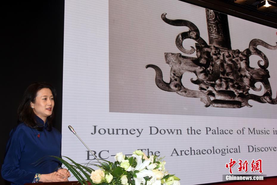 12月15日,主题为“城市化与全球化的考古学视野:人类共同的未来”的第四届世界考古论坛,在上海举办中国考古学新发现与研究专场,中国考古学界十多位专家学者代表登台演讲,分享各自主持考古项目发掘研究成果。图为湖北省文物考古研究所副研究馆员于淼介绍湖北曾侯乙墓相关考古发现。中新社记者 孙自法 摄