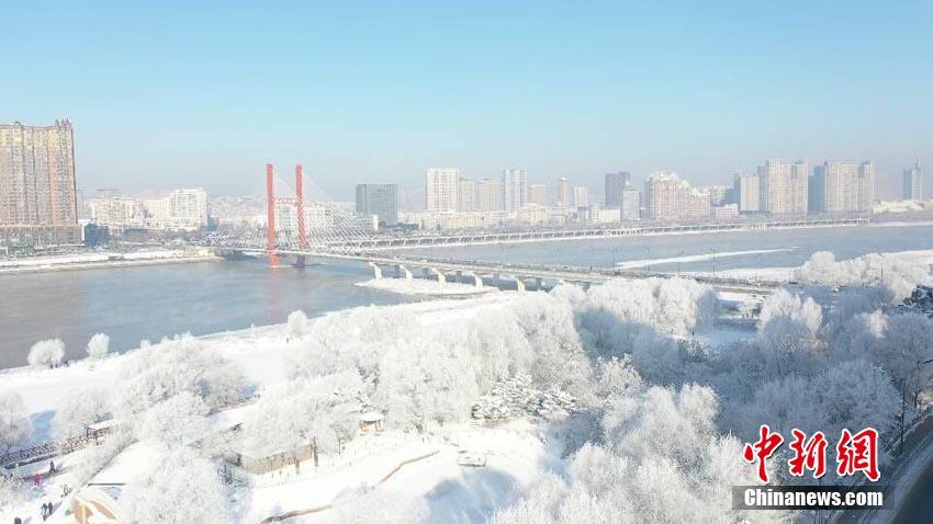 12月19日,吉林市城区迎来今冬首场雾凇景观。吉林省吉林市被誉为中国“雾凇之都”,因松花江穿城而过,受温差及江水雾气影响,每年冬季松花江畔几十里都会形成雾凇景观,这也是中国四大气象奇观之一。石洪宇 摄