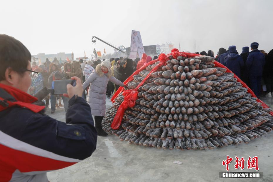 12月22日,“冬日渔歌·第四届五大连池冬捕节”在黑龙江五大连池火山堰塞湖第三池启幕。图为游客在现场拍照。中新社记者 吕品 摄