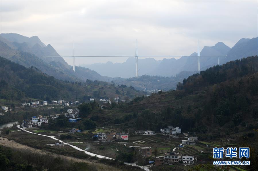 这是12月29日拍摄的贵州平塘特大桥。目前,贵州平塘至罗甸高速公路控制性工程平塘特大桥已经通过验收,将于近日全桥通车。平塘特大桥全长2135米,桥面宽30.2米,规划双向4车道,是一座三塔双索面叠合梁斜拉桥。三座桥塔的高度分别为320米、332米和298米,相当于在峡谷之中建了三座100多层高的大楼。新华社记者 杨文斌 摄