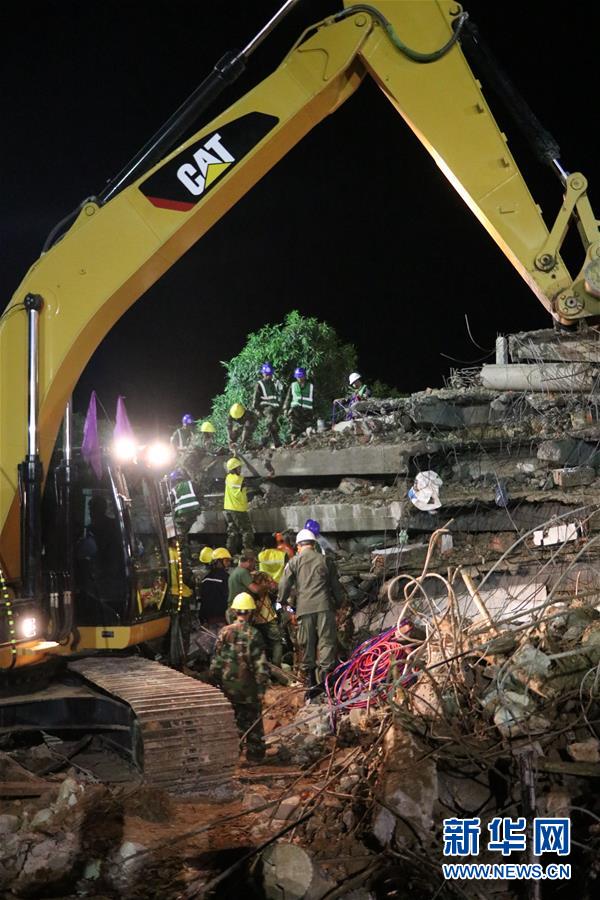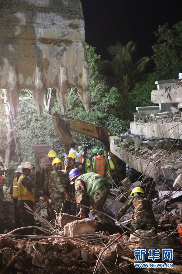 柬埔寨白马省政府发言人4日凌晨说,该省白马市一栋在建楼房3日发生坍塌事故,已造成6人死亡、16人受伤,另有数人被困,救援工作仍在进行。 新华社记者毛鹏飞摄