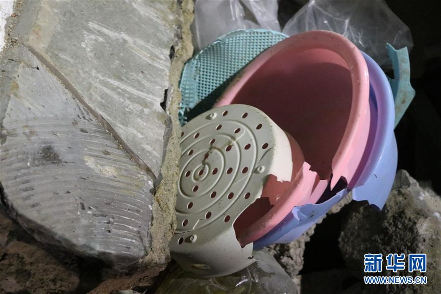 这是1月4日在柬埔寨白马市拍摄的坍塌楼房废墟中的生活用品。 新华社记者毛鹏飞摄