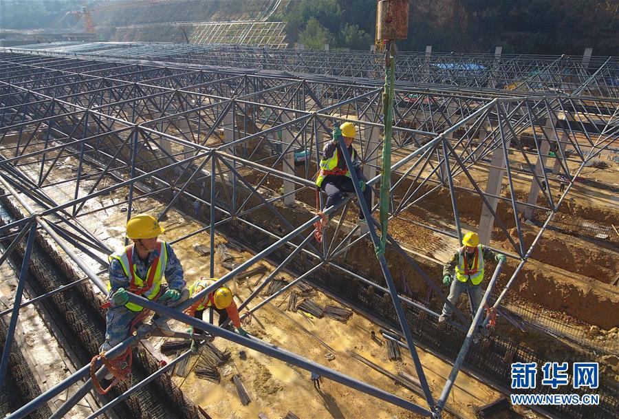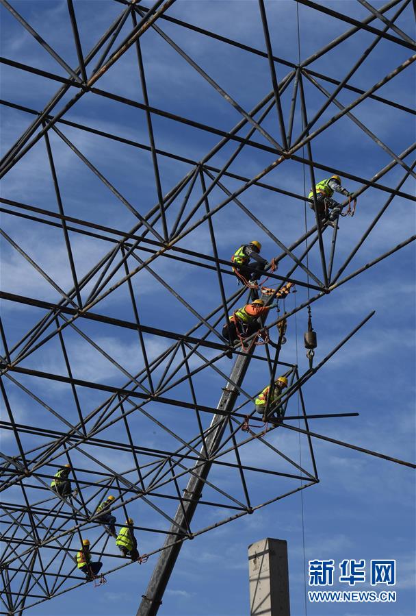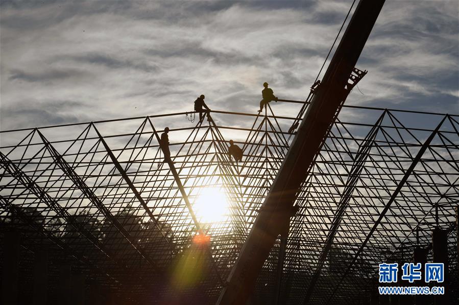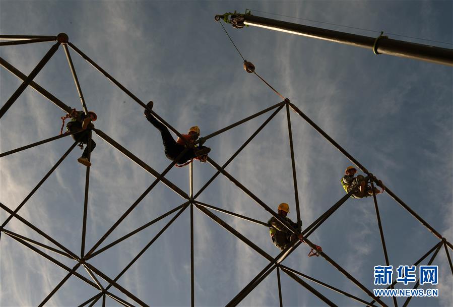1月7日,工人在广卫停车场建设工地安装网架。 新华社记者 杨宗友 摄
