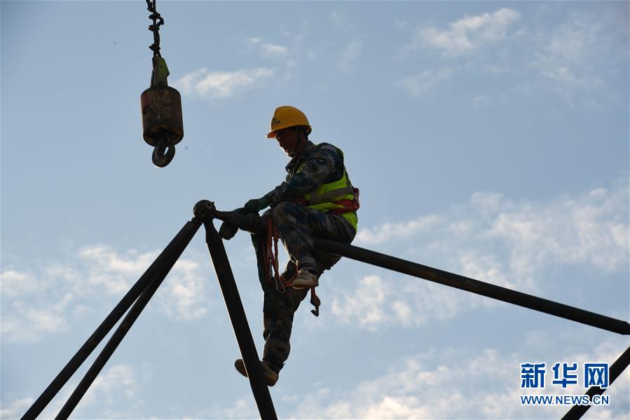 在昆明轨道交通4号线广卫停车场建设工地,工人在高空拼装网架。他们不惧风吹日晒,每天攀上高空作业,被誉为建设工地上的“蜘蛛人”。