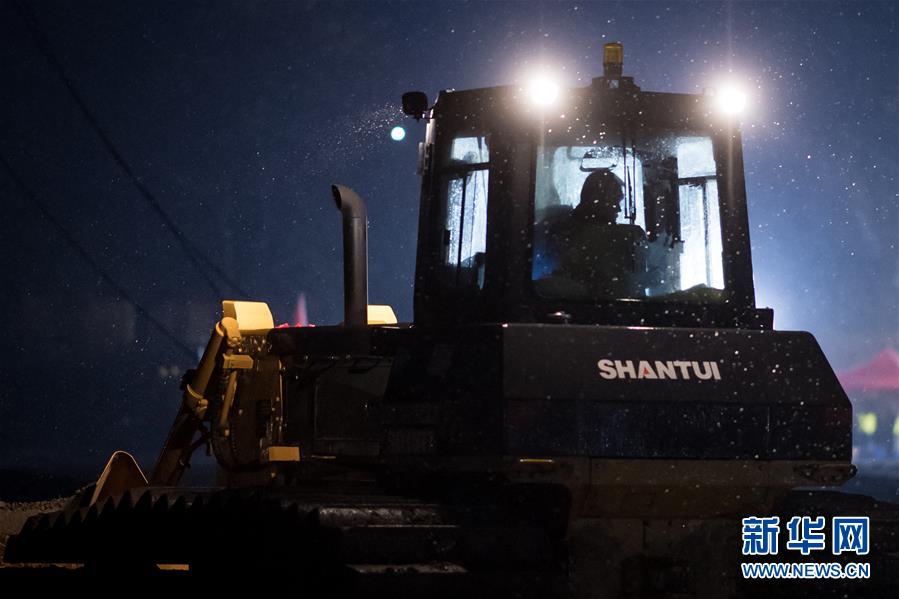 1月24日,在武汉火神山医院建设工地,工人驾驶大型机械加紧施工。 除夕夜,武汉火神山医院建设工地灯火通明,建设团队放弃与家人团聚,加紧建设这座专门医院。 武汉市参照2003年抗击非典期间北京小汤山医院模式,正在蔡甸区建设的专门医院正式命名为火神山医院。新医院计划于2月3日建成,集中收治新型冠状病毒感染的肺炎患者。 新华社记者 肖艺九 摄