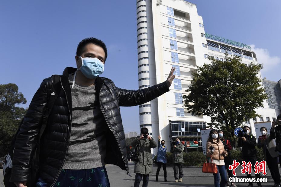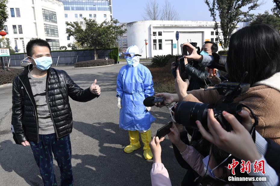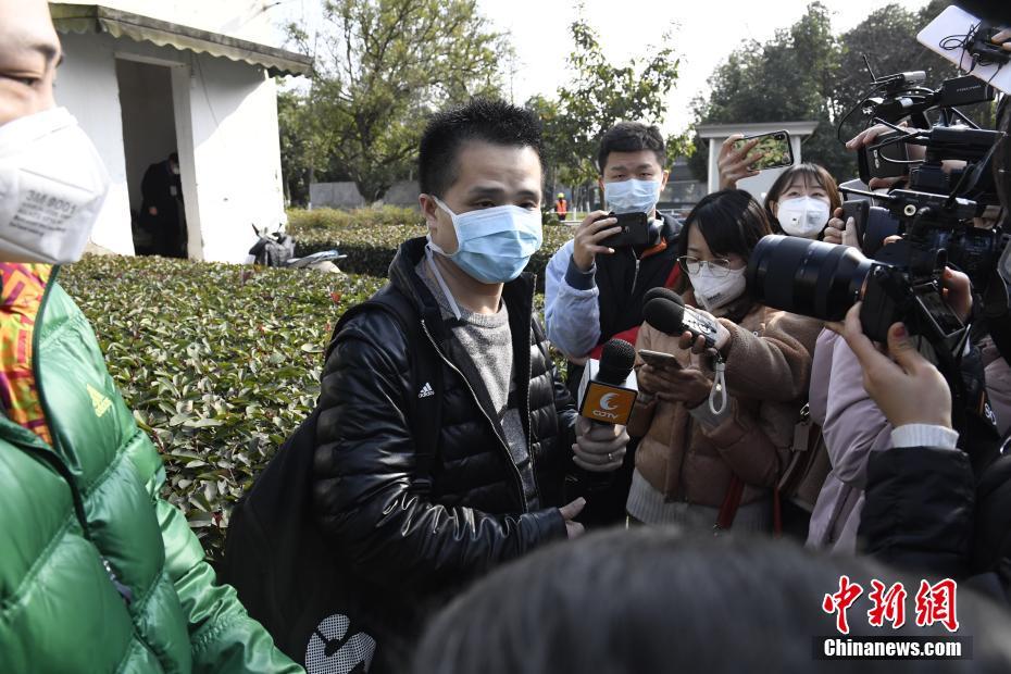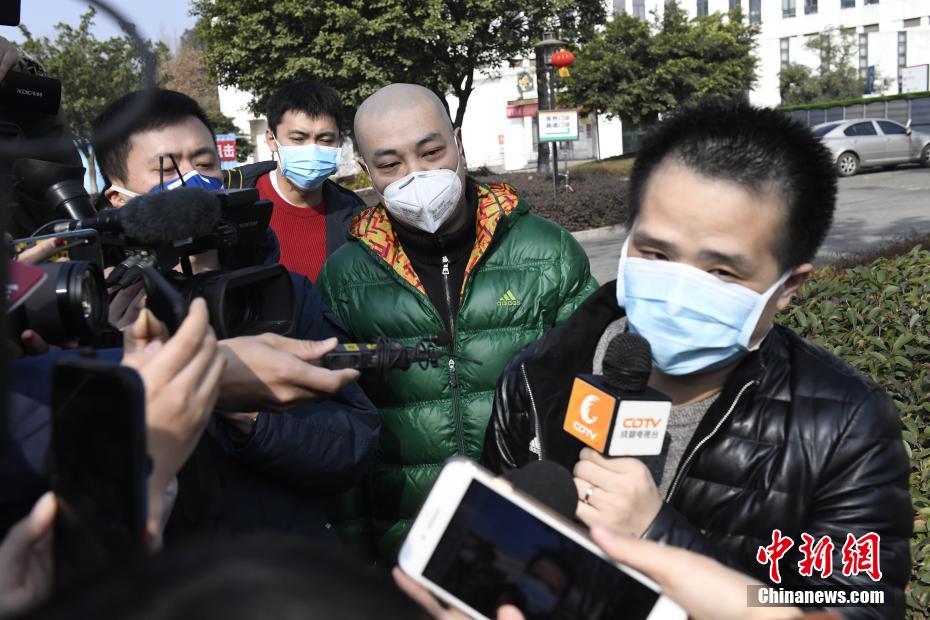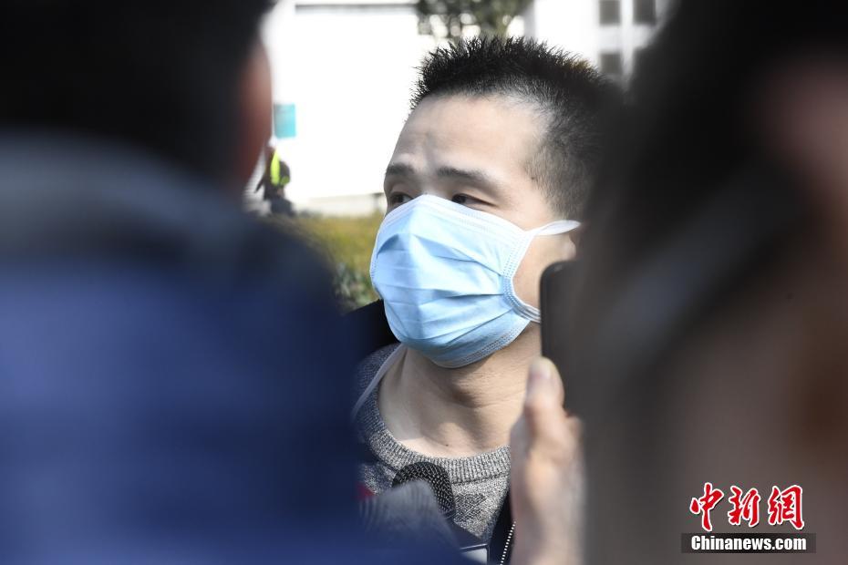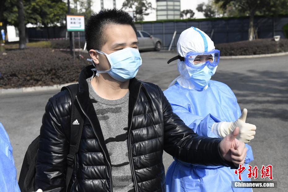 1月29日,成都市公共卫生临床医疗中心一名新型肺炎患者治愈出院,这是四川省治愈的第一例新型冠状病毒感染的肺炎病例。患者杨某,男性,34岁,武汉某公司职员,1月21日,经国家疾控中心复核确诊为新型冠状病毒感染的肺炎,收入成都市公共卫生临床医疗中心隔离治疗,1月26日、28日经成都市疾控中心两次核酸检测阴性,符合解除隔离治疗标准。图为杨某(中)出院。 余玲芳 摄