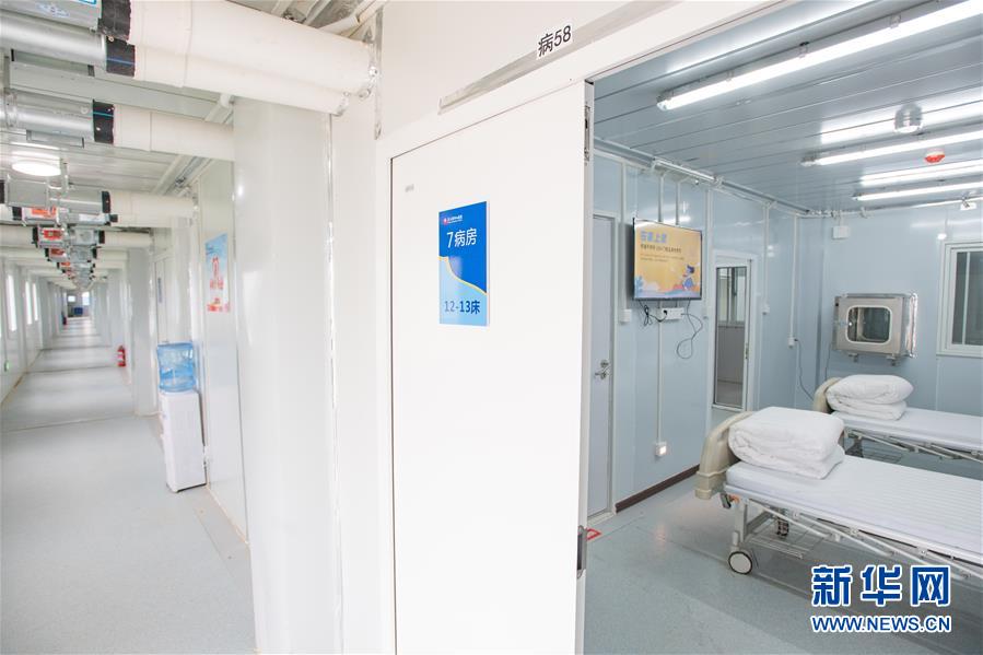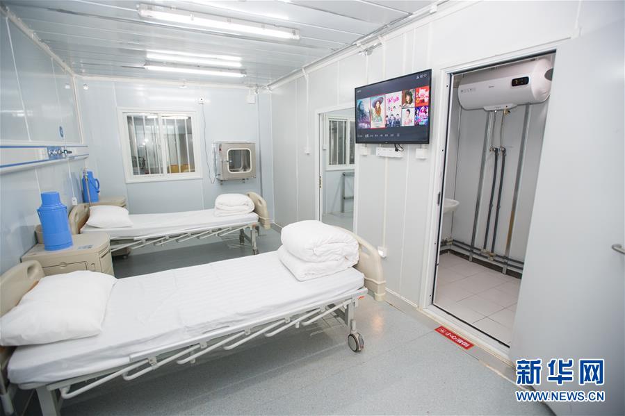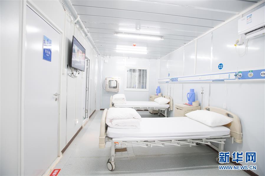 这是2月8日拍摄的武汉雷神山医院病房。 位于武汉市江夏区黄家湖畔的雷神山医院由中南建筑设计院设计,中建三局承建。医院整体参照战地医院形式,采用模块化设计,主要包括医疗用房区、医护保障区、医疗辅助区。 新华社记者肖艺九摄