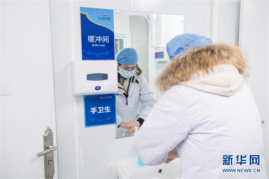 2月8日,进驻的医务人员在进行准备工作。 位于武汉市江夏区黄家湖畔的雷神山医院由中南建筑设计院设计,中建三局承建。医院整体参照战地医院形式,采用模块化设计,主要包括医疗用房区、医护保障区、医疗辅助区。 新华社记者肖艺九摄