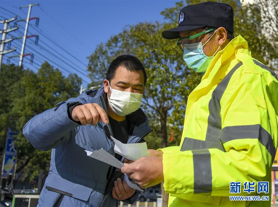 2月20日,62岁的退休民警刘汉楚在孝感市孝南区九真社区进行志愿巡逻。新华社记者 胡虎虎 摄