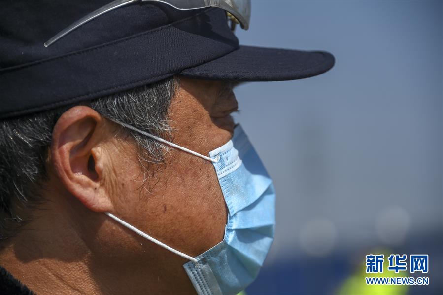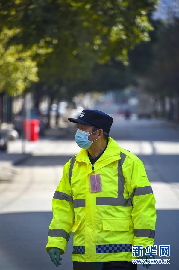 2月20日,63岁的退休民警潘旭亮在孝感市孝武大道东山头疫情防控工作点值守。新华社记者 胡虎虎 摄