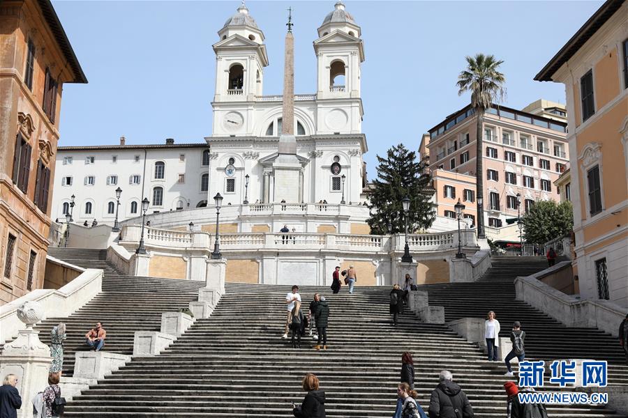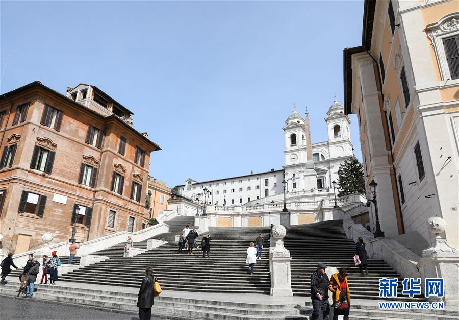 3月10日,在意大利首都罗马,西班牙台阶上游客明显减少。 新华社记者 程婷婷 摄