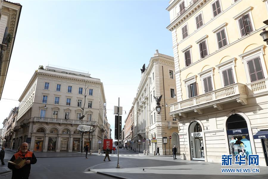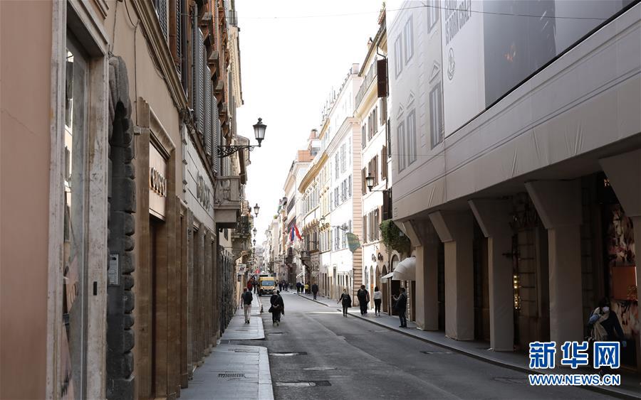 3月10日,在意大利首都罗马,孔多蒂街上人流量明显减少。 新华社记者 程婷婷 摄