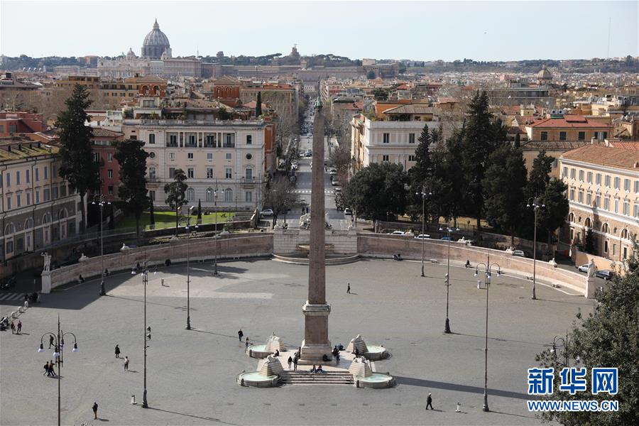 3月10日,在意大利首都罗马,人民广场上游人稀少。 新华社记者 程婷婷 摄