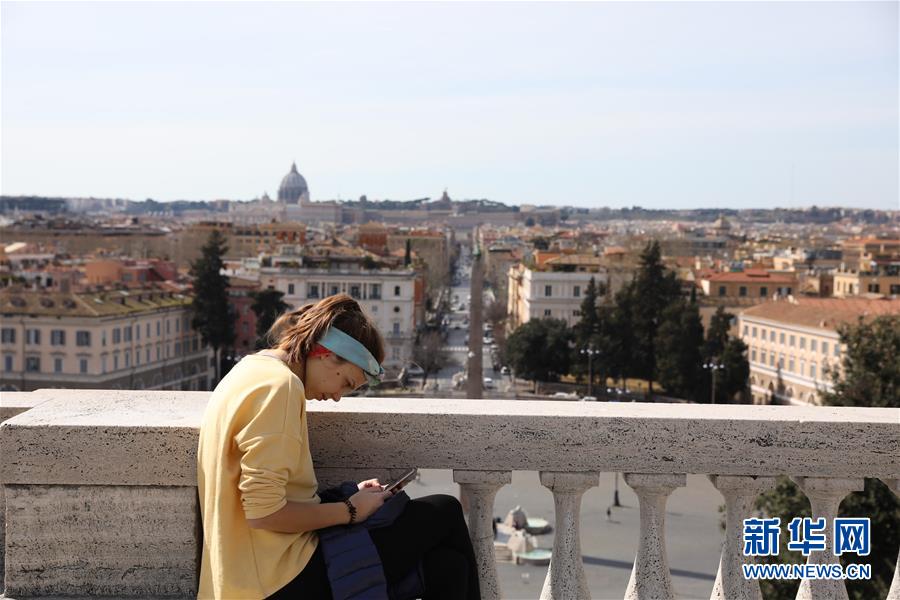 3月10日,在意大利首都罗马,一名女子在苹丘坐着休息。 新华社记者 程婷婷 摄