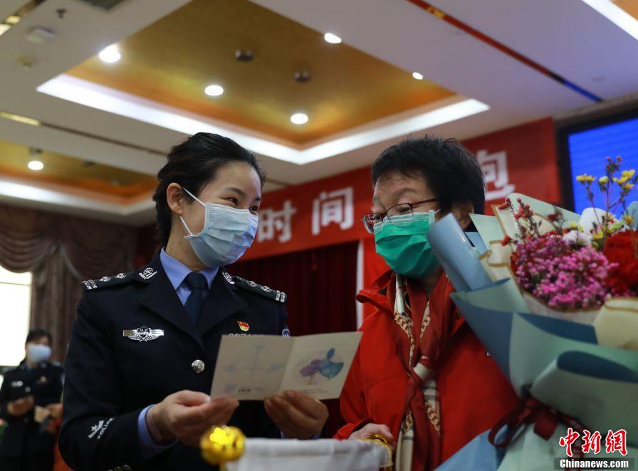 云南援助湖北医疗队驻咸宁的女队员们收到了当地警方赠送的特殊礼物。龚轩 摄
