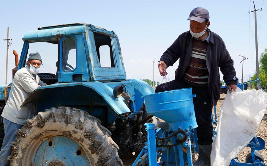 新华社照片,塔什干,2020年4月19日 (国际)(2)乌兹别克斯坦加紧棉花春播 4月18日,在乌兹别克斯坦首都塔什干郊区,农民在进行棉花春播工作。 乌兹别克斯坦盛产棉花,素有“白金之国”美誉,是世界上主要棉花生产国和出口国之一。 新华社发(扎法尔摄)