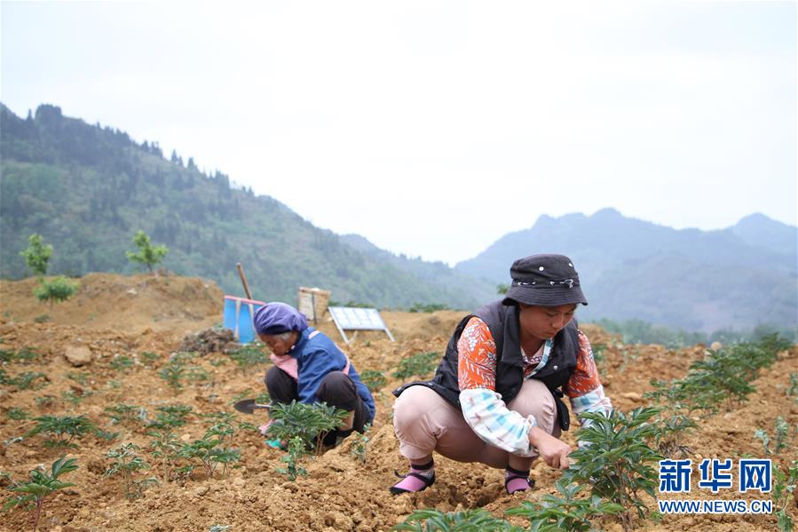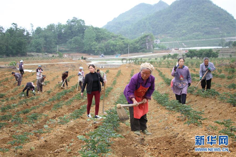 4月22日,村民在永睦坝区的芍药地里套种金丝皇菊。新华社记者 郑明鸿 摄