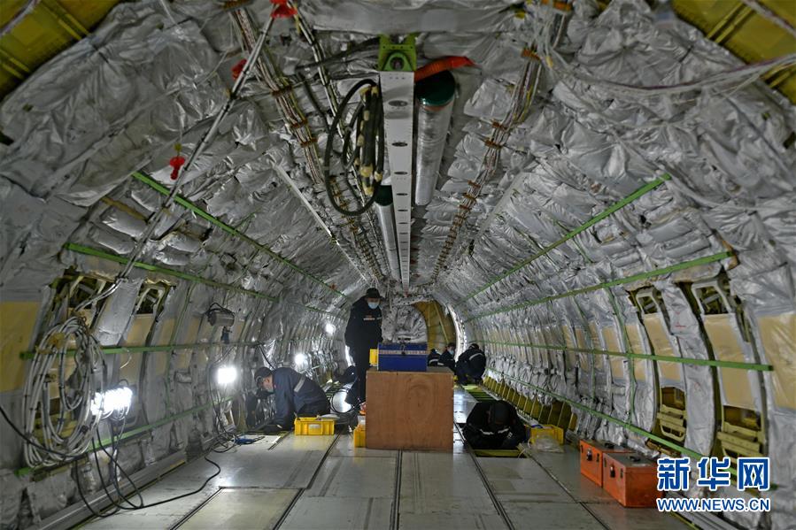 山东太古飞机工程有限公司技术人员在进行改装作业(4月27日摄)。