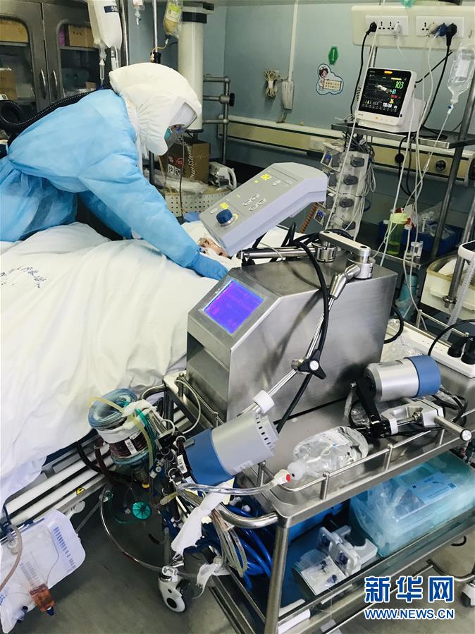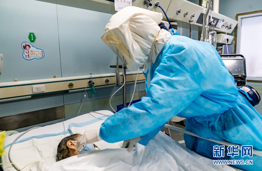武汉市金银潭医院护士梁顺(右)在工作中(资料照片)。 新华社发