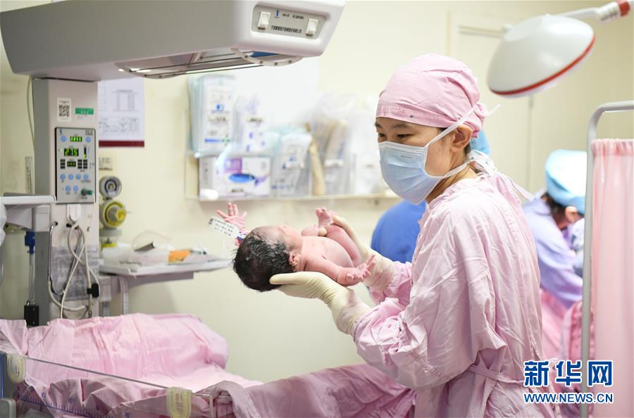 陈志昊在中山大学附属第一医院妇产科照顾刚出生的婴儿(5月9日摄)。 新华社记者 邓华 摄