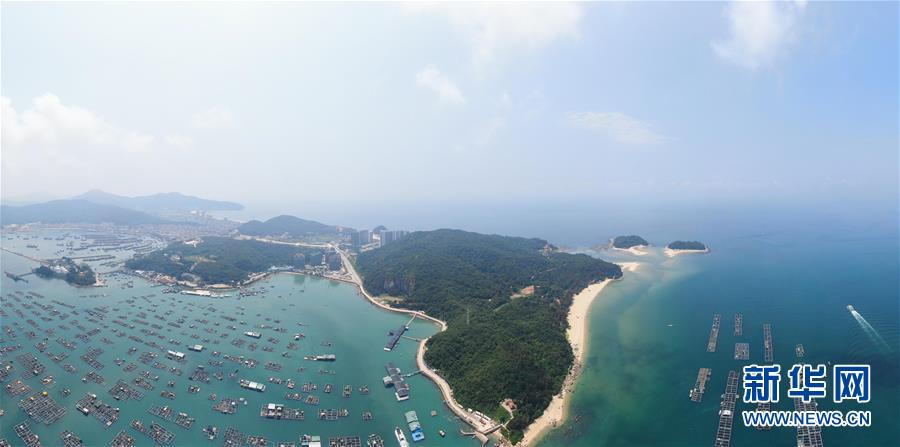 这是5月13日拍摄的海陵岛风光(无人机照片)。 海陵岛位于广东省阳江市西南部,天蓝海碧、山青沙洁,海洋渔业资源丰富。 新华社记者 邓华 摄
