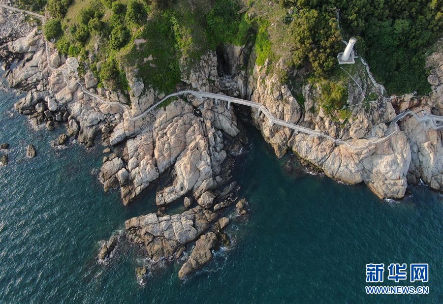 这是5月13日拍摄的海陵岛滨海栈道(无人机照片)。 海陵岛位于广东省阳江市西南部,天蓝海碧、山青沙洁,海洋渔业资源丰富。 新华社记者 邓华 摄