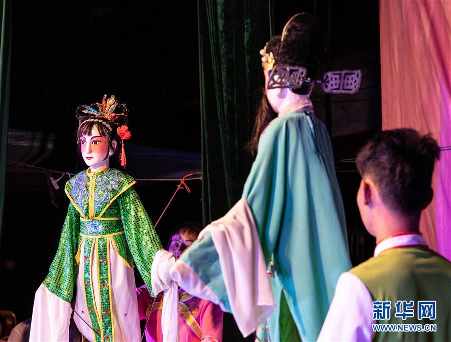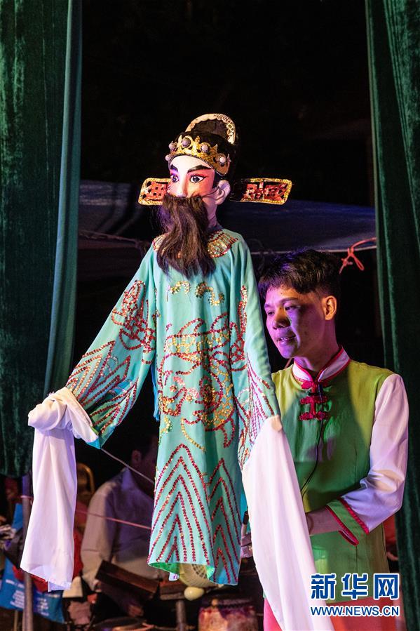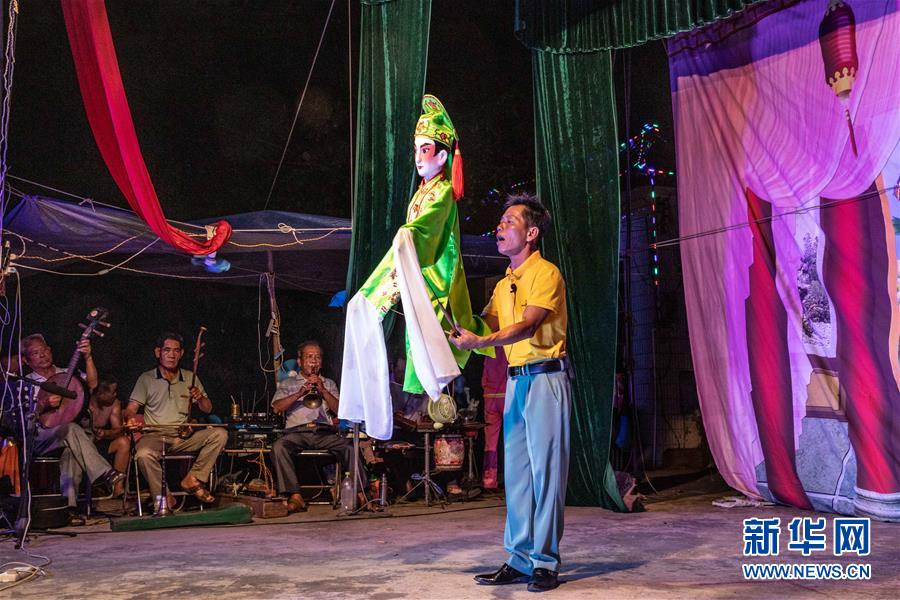 5月24日,海南临高新风人偶戏团在临高县美朗村演出。新华社记者 张丽芸 摄
