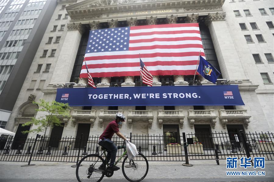 5月26日,一名男子骑车经过美国纽约证券交易所大楼。 新华社记者 王迎 摄