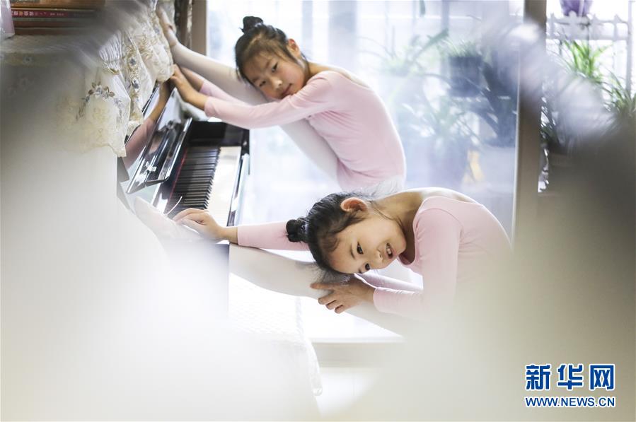 图为5月31日,朱皓嫡在家中练习舞蹈的基本动作。 新华社记者欧东衢摄