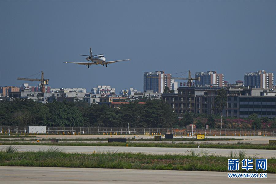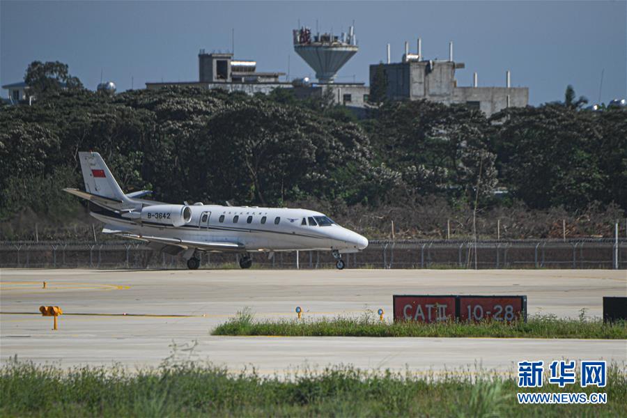 6月1日,校验飞机低空掠过海口美兰国际机场二期跑道,以开展飞行校验工作。 当日,海口美兰国际机场二期扩建项目启动飞行校验工作。标志着该项目从“建设”阶段跨入“飞起来”阶段。 新华社记者 蒲晓旭 摄
