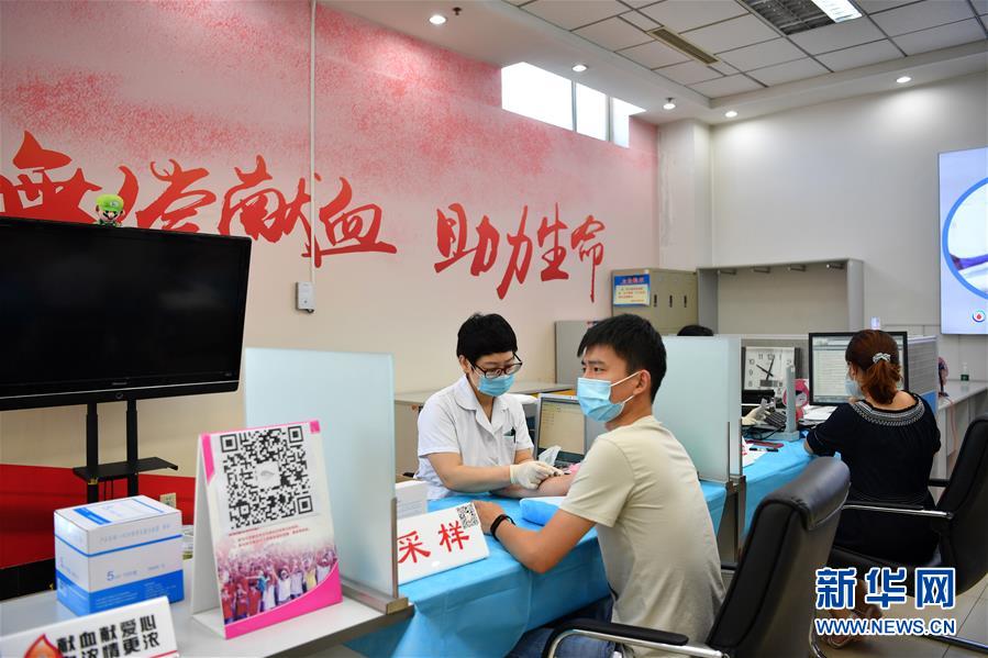 6月14日,献血者在天津市血液中心进行采样。 当日是世界献血者日,天津市血液中心迎来不少献血者参加无偿献血。 新华社记者 李然 摄
