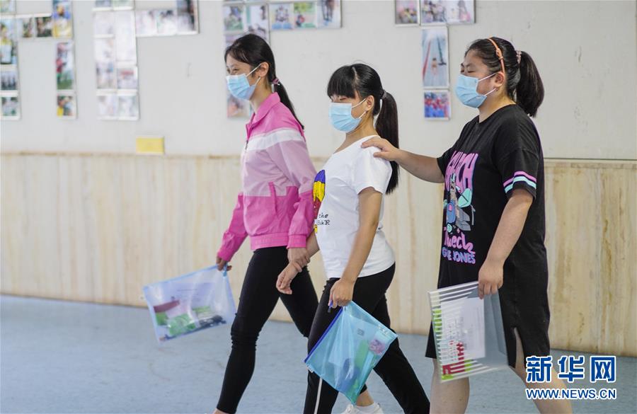 6月20日,上午的考试结束后,视障学生考场的低视力考生和盲人考生相互扶持着步出考场。 当日,重庆2020首场高等特殊教育招生考试在重庆市特殊教育中心开考。来自广东、四川、云南、重庆等18个省(自治区、直辖市)的116名聋哑考生、低视力考生、盲人考生等参加了本次长春大学高等特殊教育招生考试重庆考场的残疾人单招考试。 新华社记者 刘潺 摄