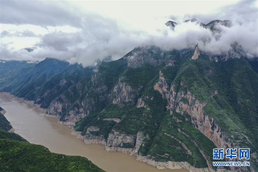 这是6月21日在重庆市巫山县拍摄的雨后巫峡,两岸碧山如画,云雾缭绕在其间(无人机照片)。新华社记者 黄伟摄
