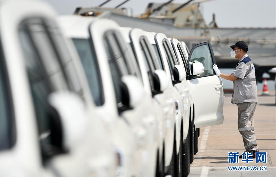 6月21日,司机在天津港环球滚装码头接卸车辆。 当日,装载着数千辆平行进口汽车的滚装船顺利停靠天津港环球滚装码头,共接卸2600余辆丰田、日产等品牌的平行进口汽车。今年前5个月,天津港集团完成货物吞吐量1.68亿吨,集装箱吞吐量689.5万标准箱,分别同比增长1%和1.6%。 新华社记者 李然 摄