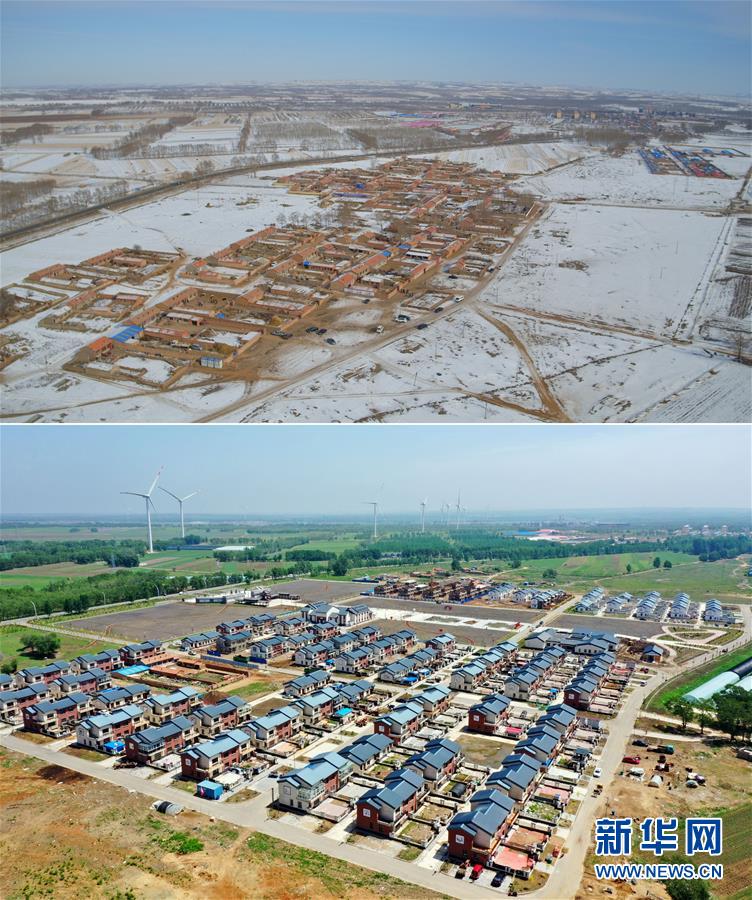 拼版照片:上图为2017年1月24日拍摄的德胜村村貌(无人机照片);下图为2020年6月23日拍摄的德胜村村貌(无人机照片)。 新华社记者 牟宇 摄