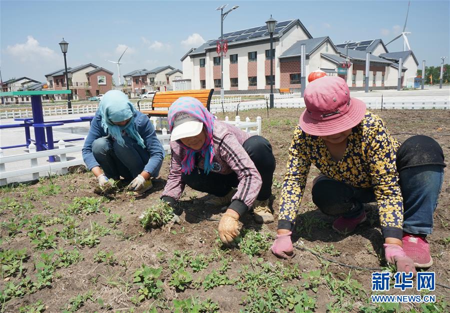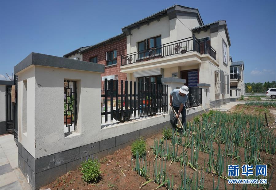 德胜村村民在自家楼房前打理种植的农作物(6月23日摄)。 新华社记者 杨世尧 摄