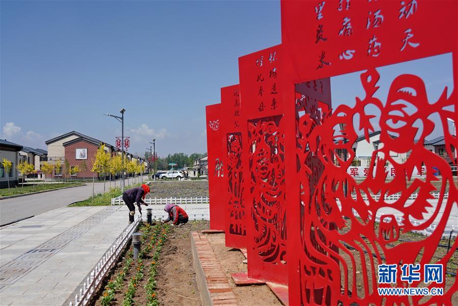 6月23日,工人在德胜村打理种植的花卉。新华社记者 牟宇 摄