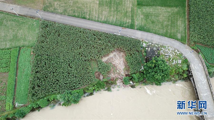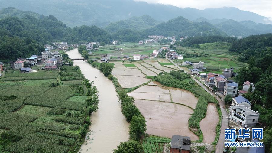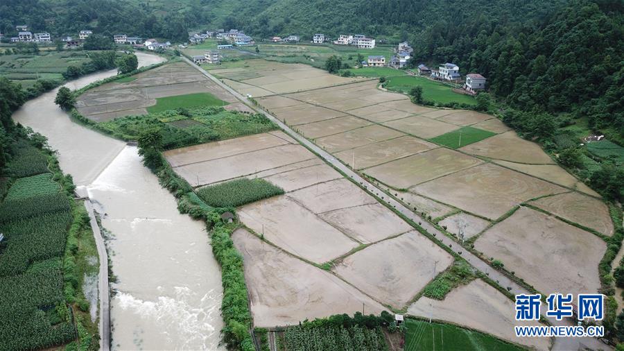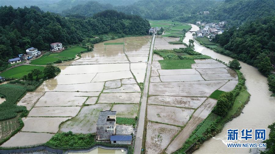 7月7日,在桑植县凉水口镇,一处农田被洪水侵袭(无人机照片)。 近日,湖南省张家界市桑植县连续出现强降雨天气,造成多个乡镇农田被淹。截至7月7日下午,全县受灾4万余人,农作物受灾面积近2000公顷。 新华社发(陈振海 摄)